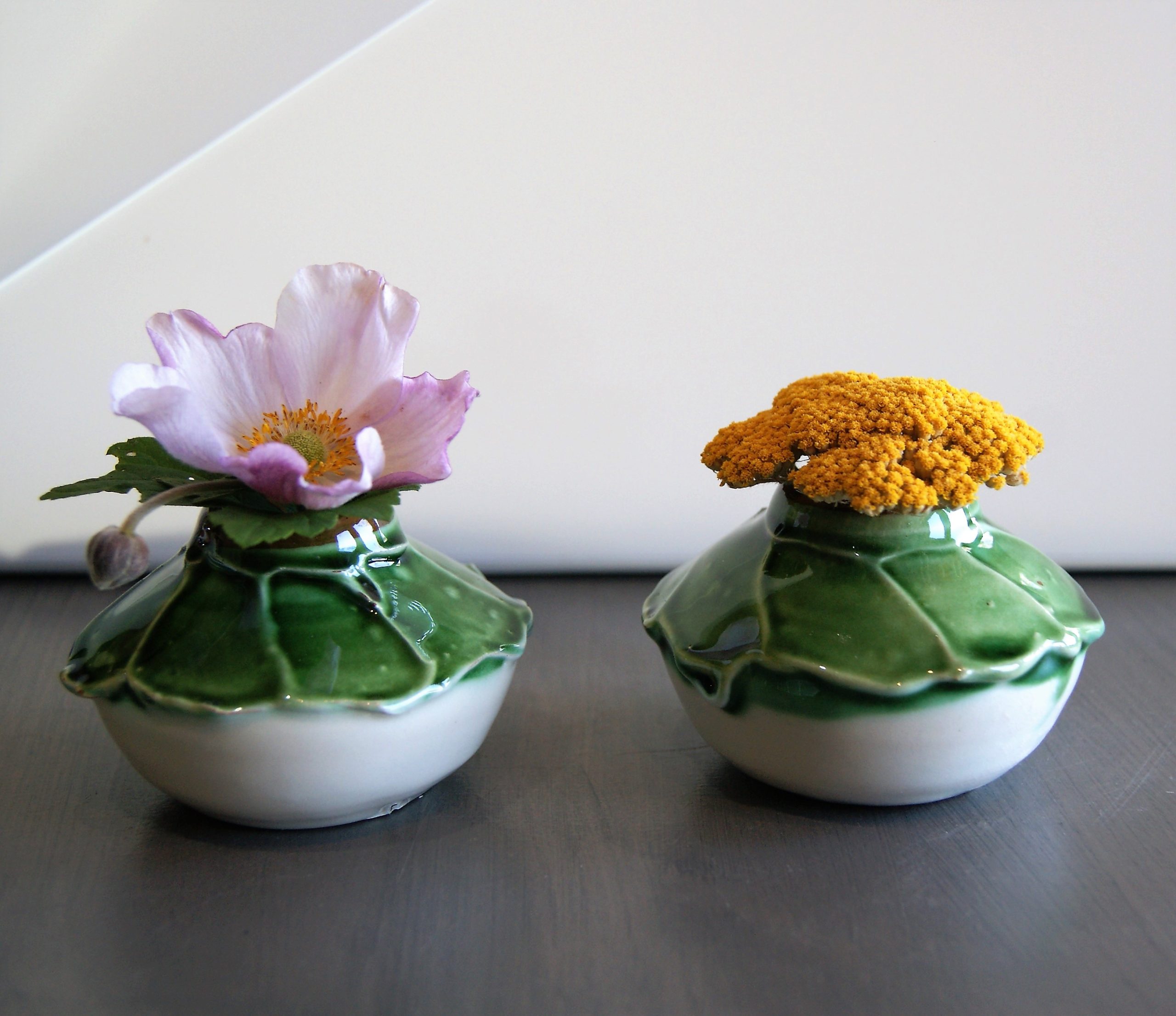 Liten handdrejad vas, dekorerad, formad med lera. En vas till den allra första blomman på våren ända fram till den frostnupna rosen på senhösten.