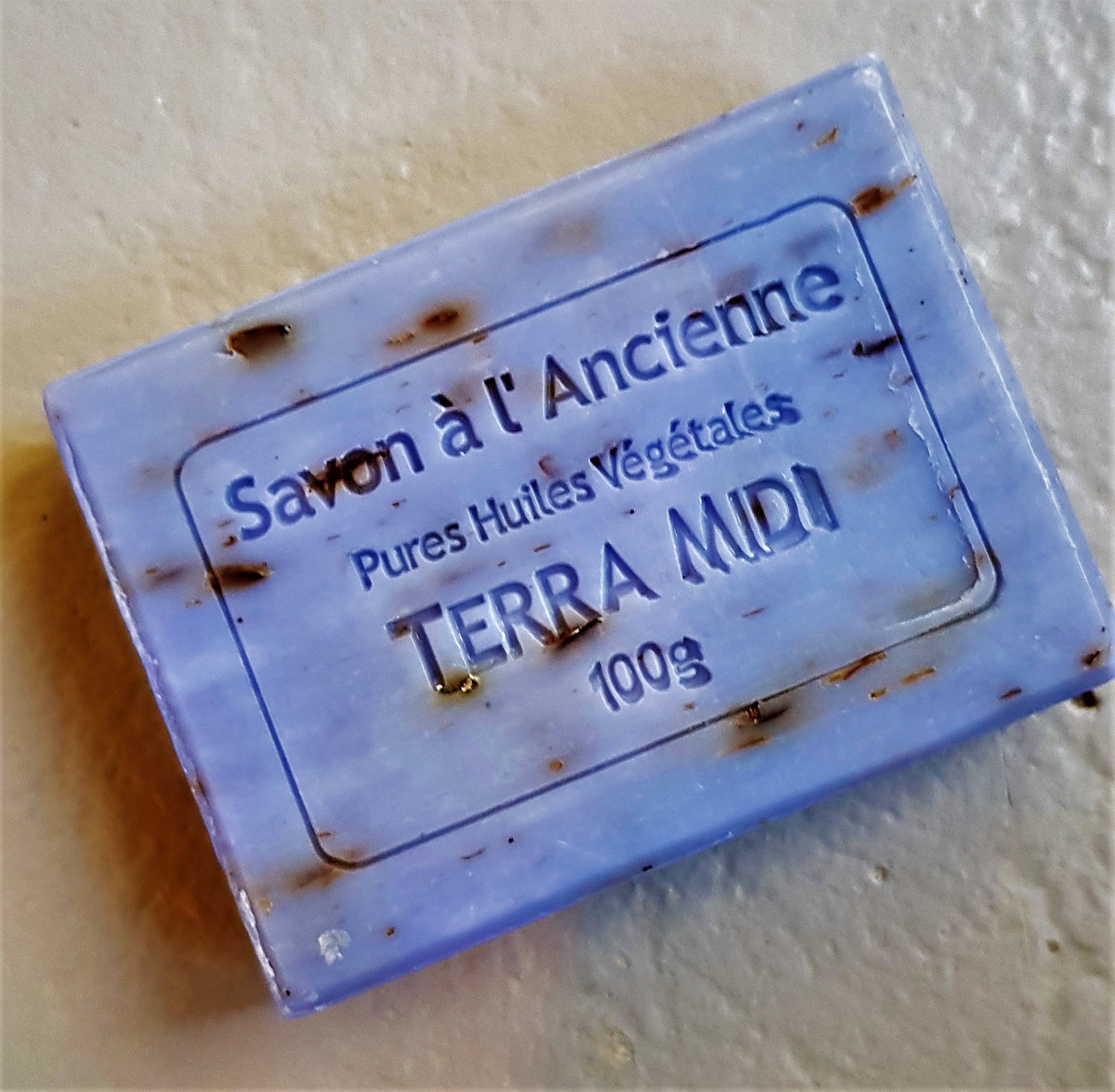 Fransktillverkad tvål från Terra Midi. En tvål som doftar gott då den ligger i badrummet. Mild för händer och räcker länge. Passar till tvålkoppen i keramik som är handdrejad och glaserad i vitt.